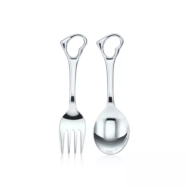 À la fois sobres et évocatrices, les créations Open Heart d’Elsa Peretti® rendent hommage à l’amour. Ce set classique composé d’une fourchette et d’une cuillère est le choix parfait pour un premier cadeau Tiffany.