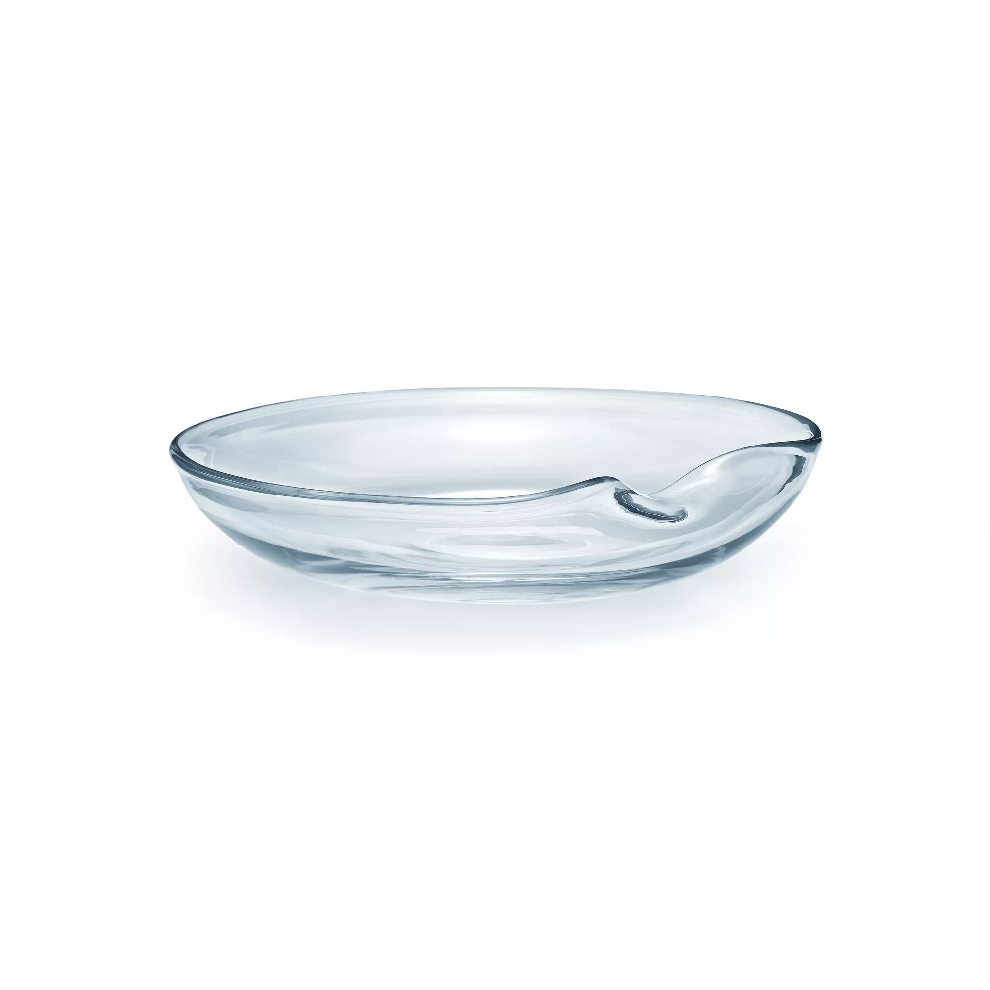 Thumbprint est l’une des plus célèbres créations d’Elsa Peretti. Plat en verre. Diamètre : 35,5 cm. Créations originales, tous droits réservés à Elsa Peretti.