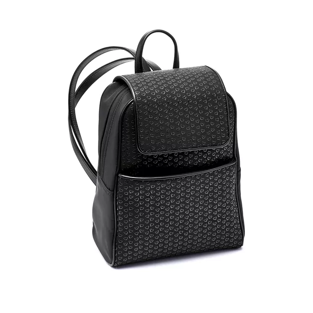 La plus célèbre des créations de Peretti revisitée dans cet article de maroquinerie de qualité. Une fois le cuir teinté, chaque cœur est recouvert d'une laque selon une ancestrale technique japonaise appelée « inden ».Sac à dos en cuir noir avec motifs Open Heart laqués. 30 x 5,5 x 22 cm. Créations originales, tous droits réservés à Elsa Peretti.