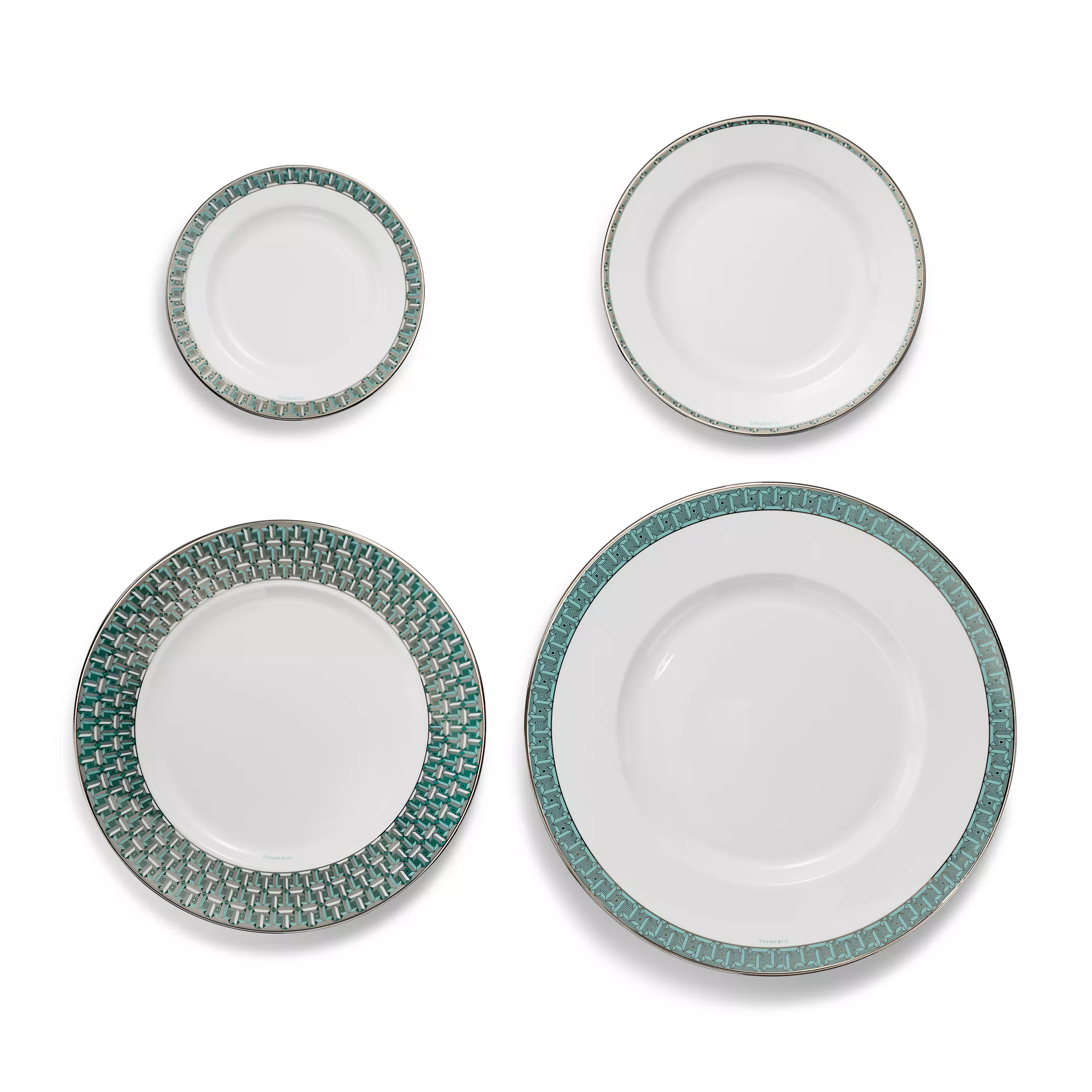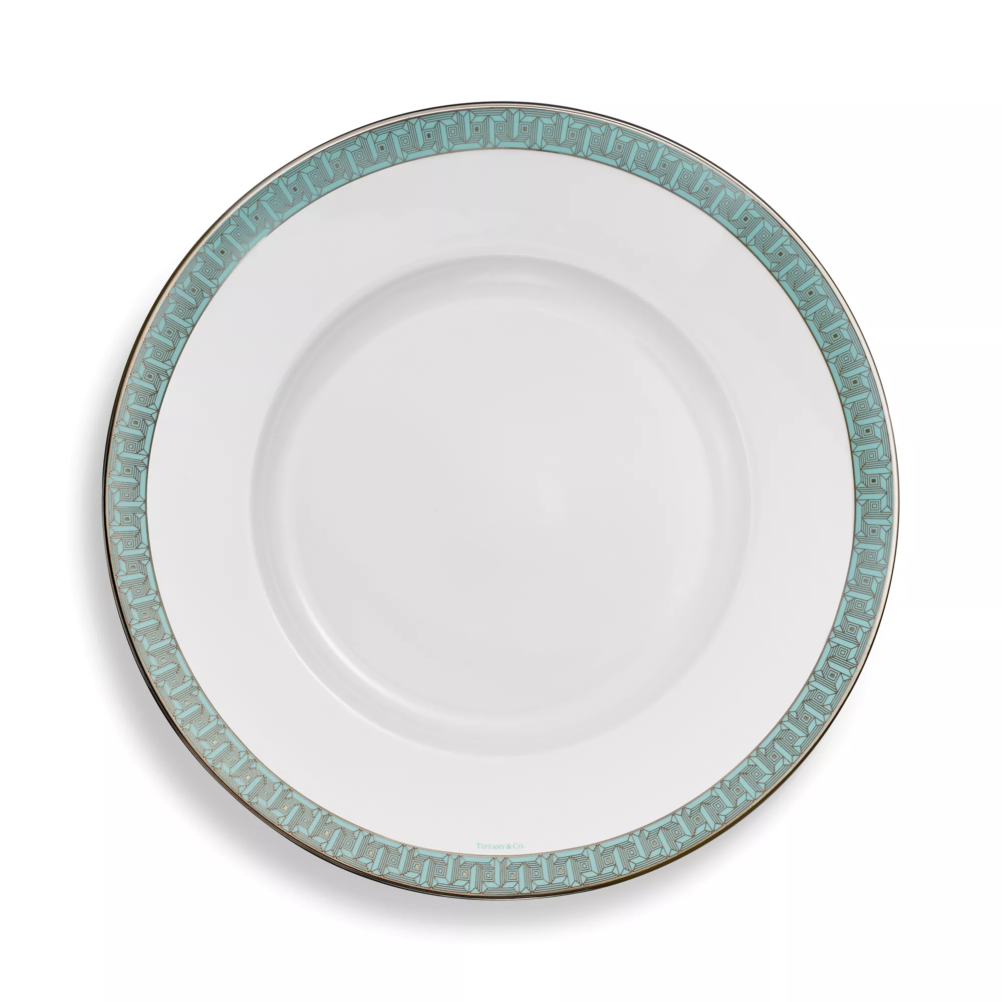 Inspirée de la collection de bijoux du même nom, la collection de vaisselle Tiffany T True apporte de l’éclat à la table. Confectionnée en porcelaine de Limoges, cette assiette de présentation ornée d’une bordure en platine peinte à la main est ornée d’une représentation géométrique du motif Tiffany T True. Associez-les à des assiettes à présentation Tiffany T True de différentes couleurs pour un décor de table saisissant.
