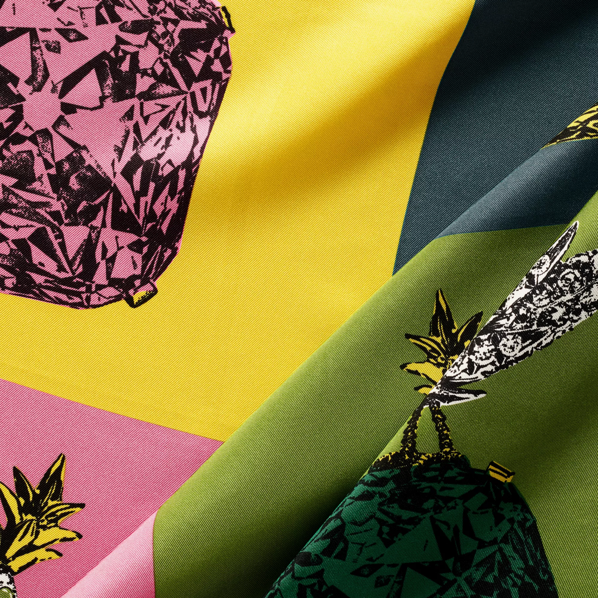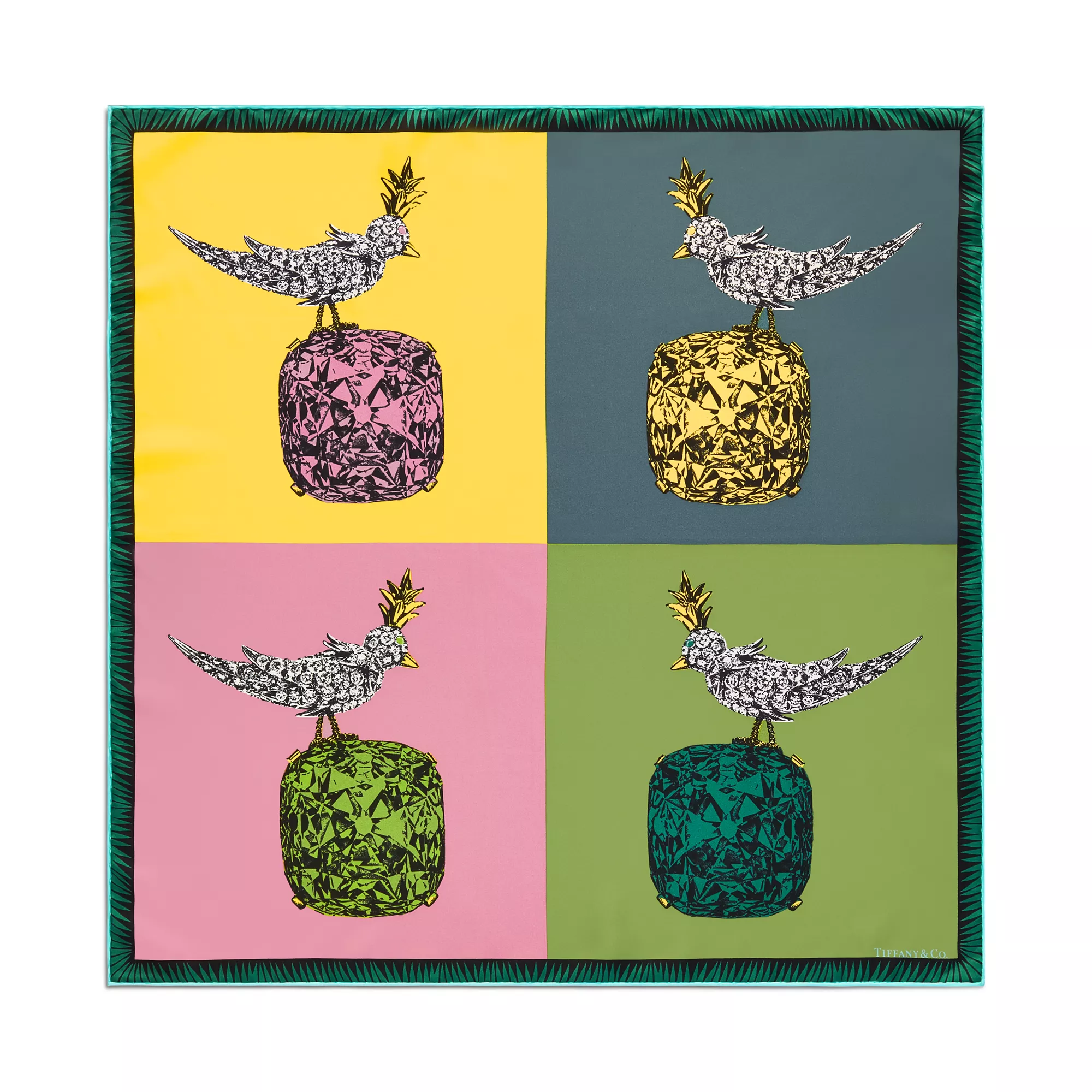 Tirée du génie de Jean Schlumberger, la broche Bird on a Rock est devenue l’une des créations joaillières les plus emblématiques du XXIe siècle. Depuis sa création dans les années 60, cette monture a accueilli les gemmes les plus extraordinaires au monde. Ce foulard carré en soie reprend le thème de la célèbre broche dans un motif quadrillé et coloré style Pop Art. Associez-le à un anneau de foulard Tiffany ou nouez-le avec art autour de votre sac à main préféré.