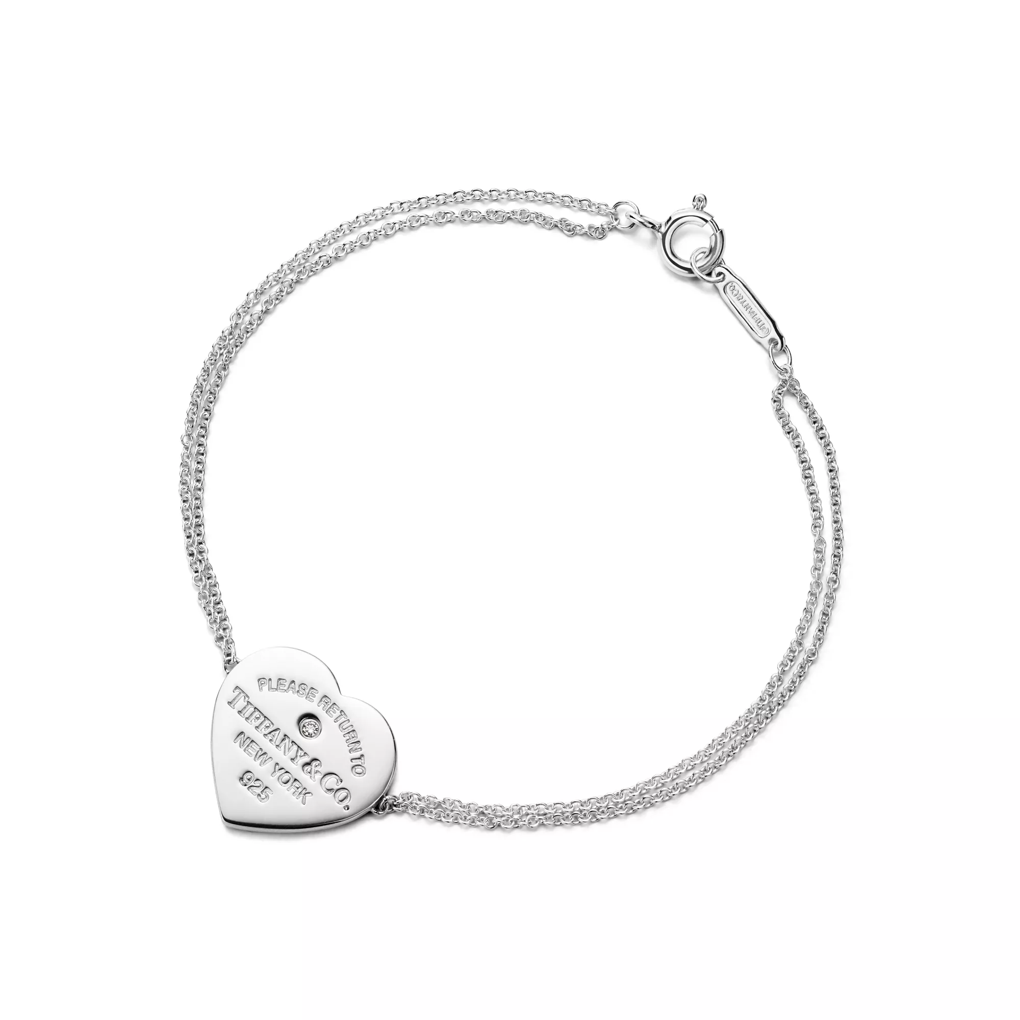 Return to Tiffany™ Bracelet double chaîne Cœur en argent 925 millièmes et diamant. Small.