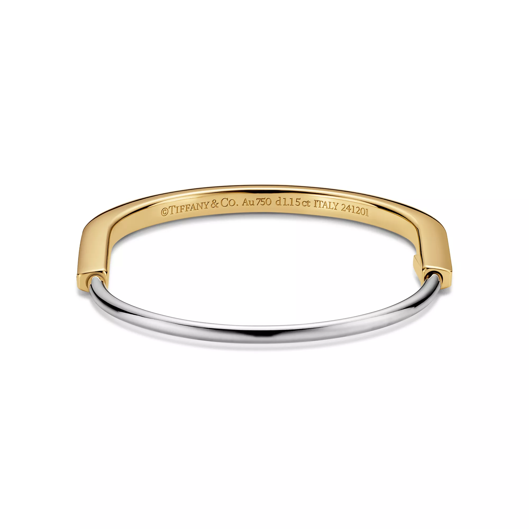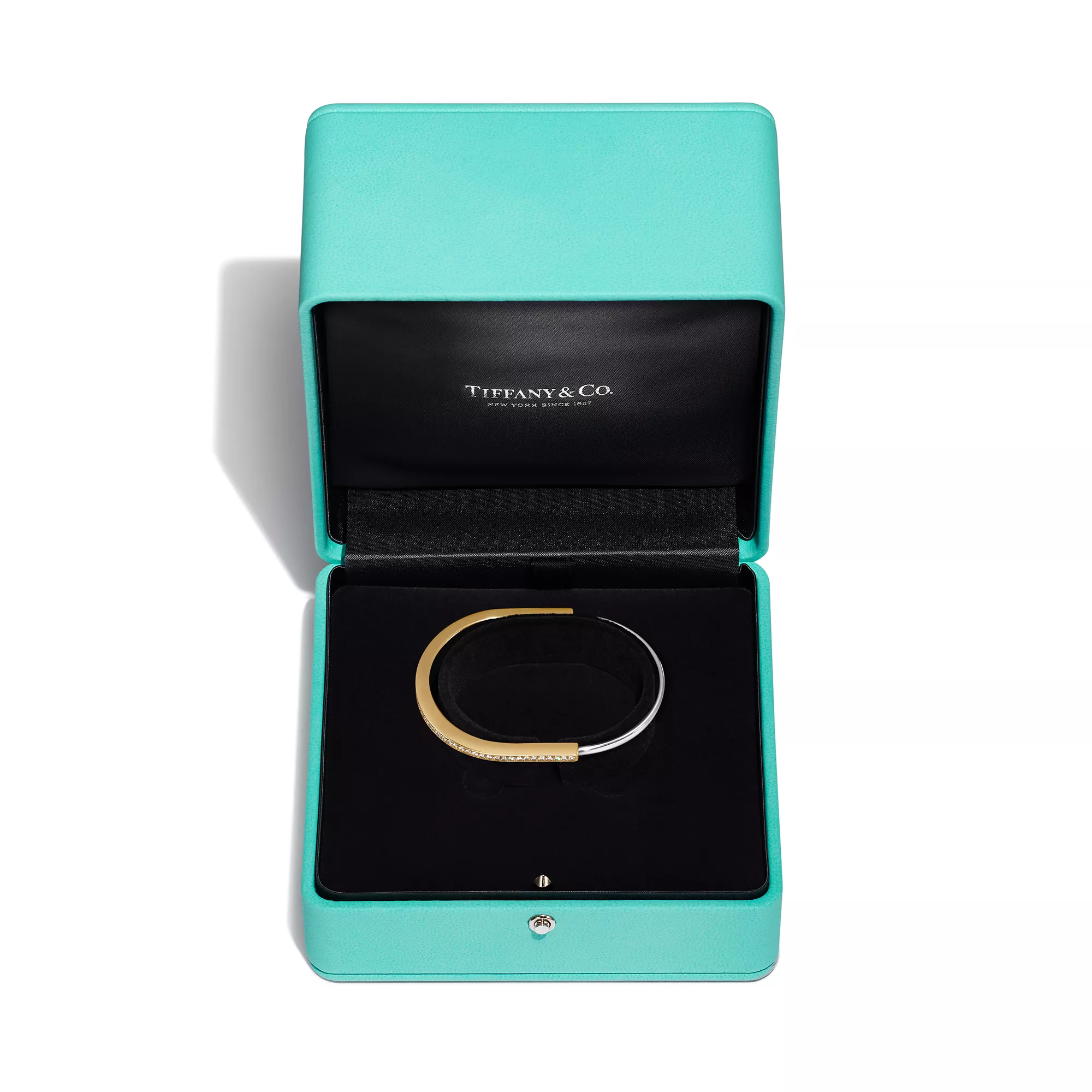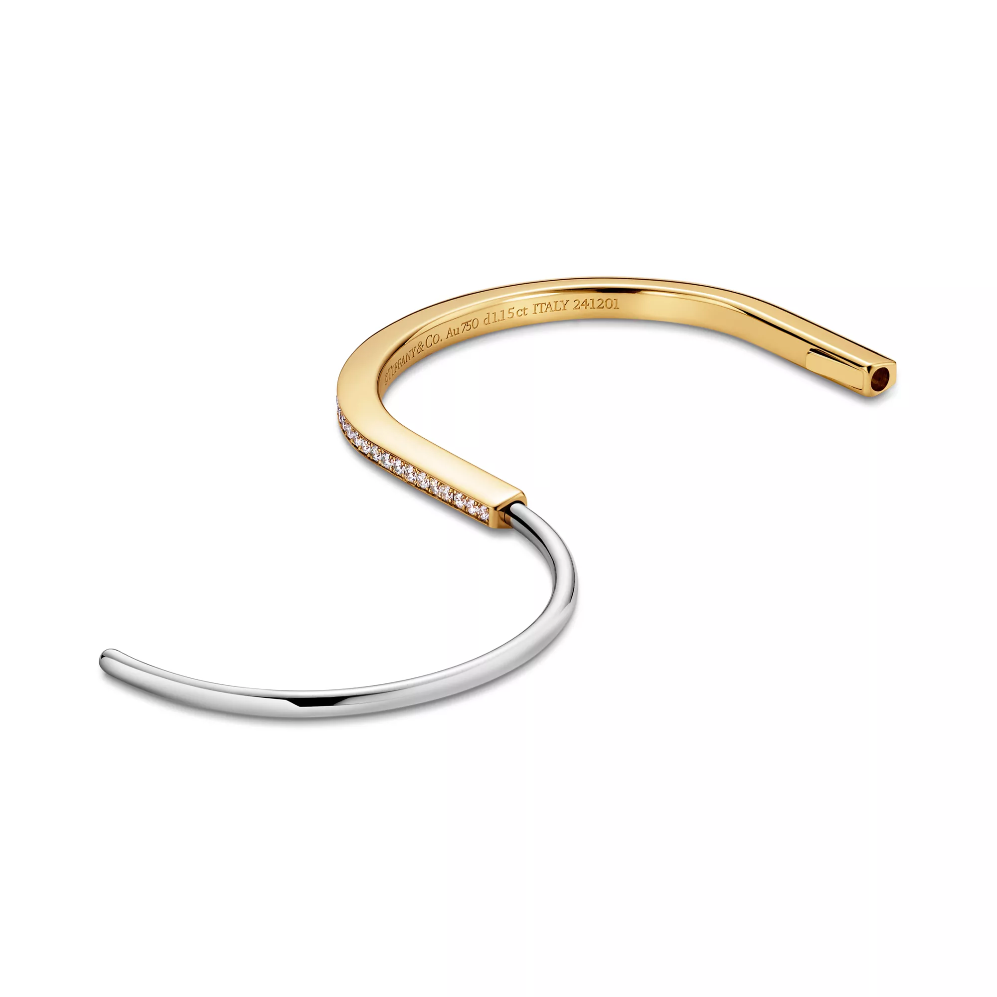 Tiffany Lock Bracelet jonc étroit en or jaune et blanc 18 carats et pavé de diamants demi-cercle
