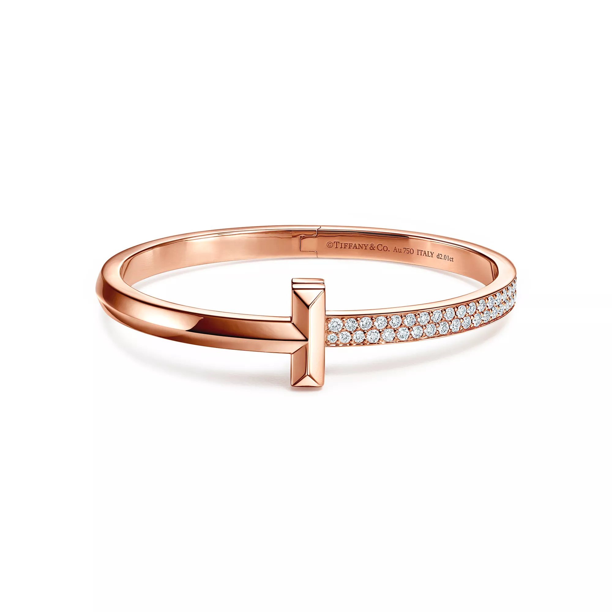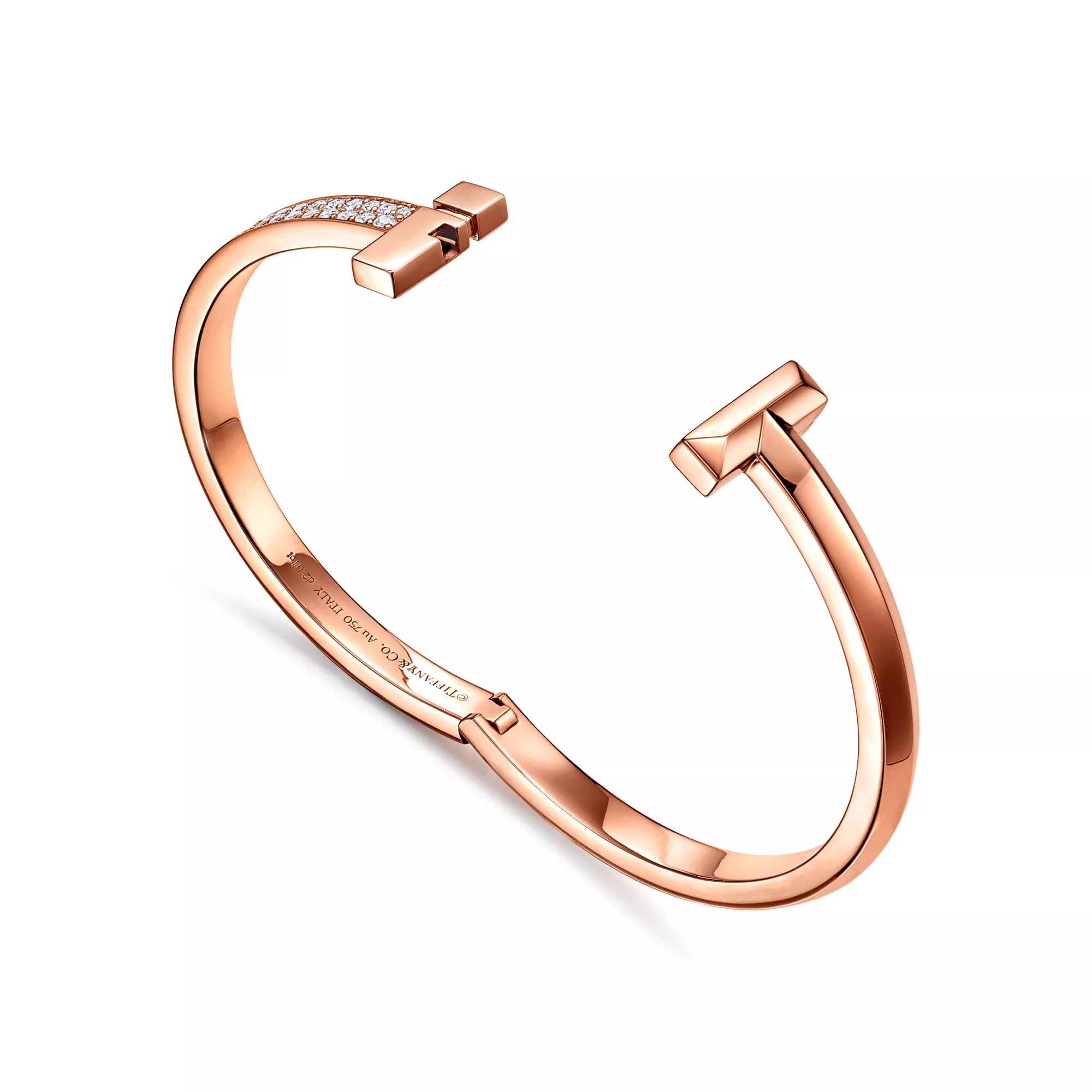 Tiffany T Bracelet jonc à charnière large T1 orné de diamants en or rose