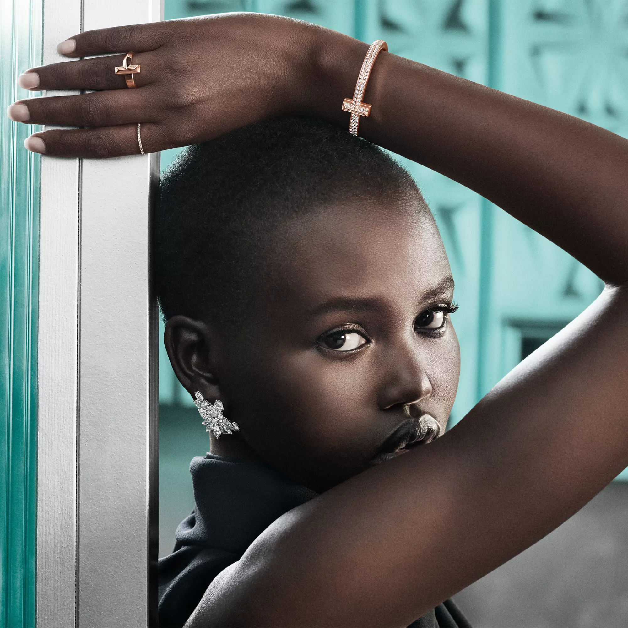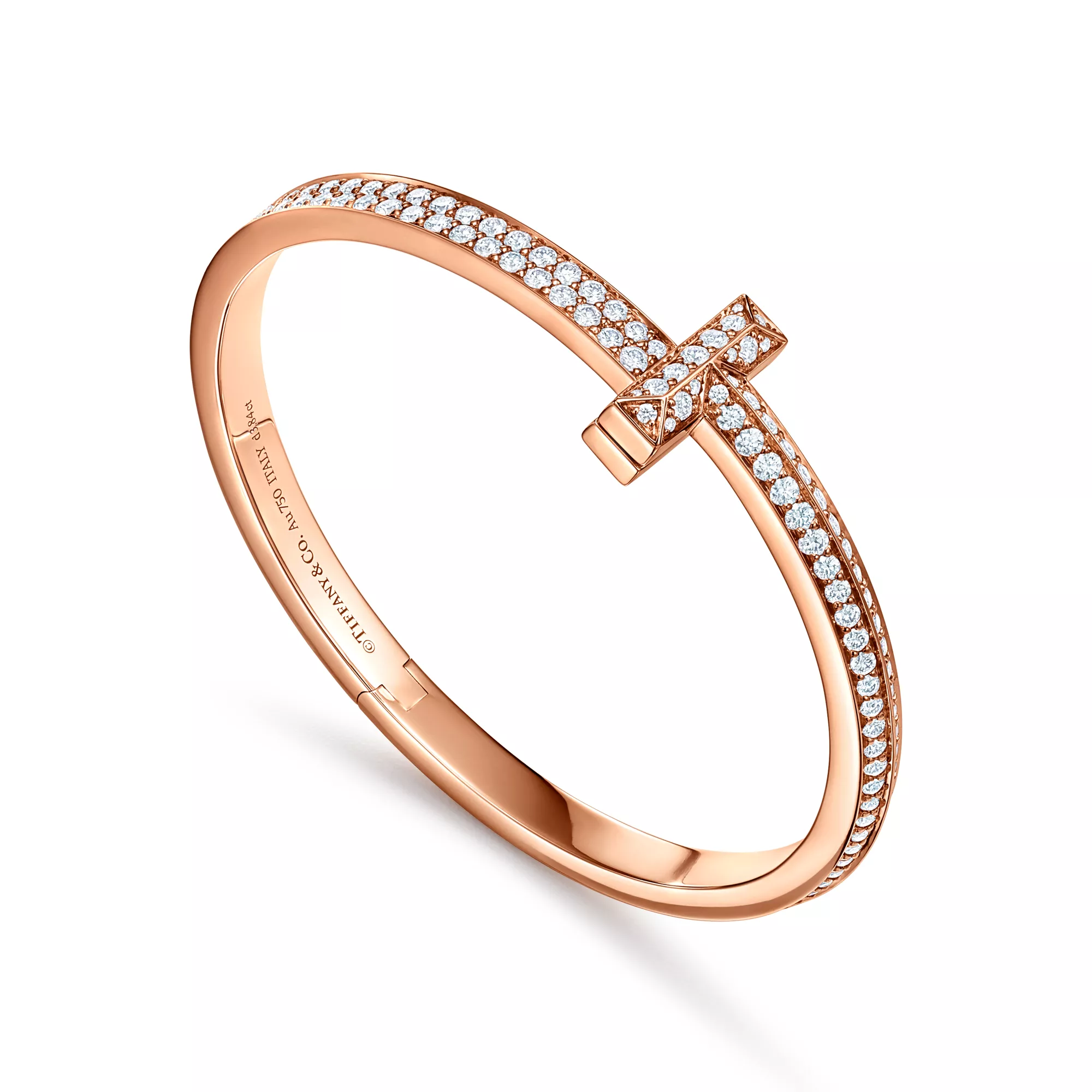 Tiffany T Bracelet jonc à charnière large T1 orné de diamants en or rose