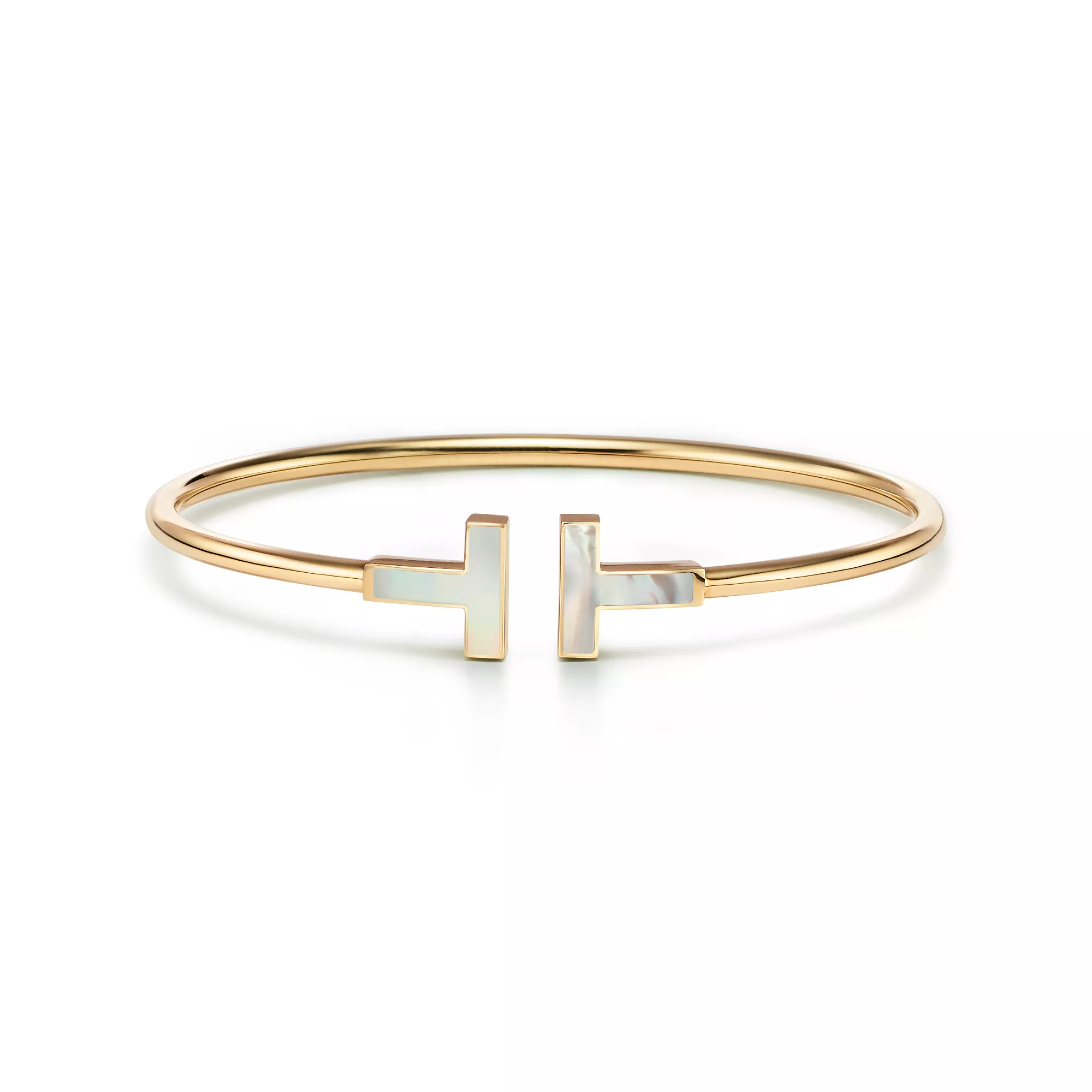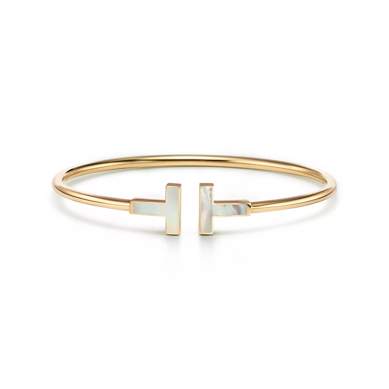 Tiffany T Bracelet Wire en or jaune 18 carats et nacre