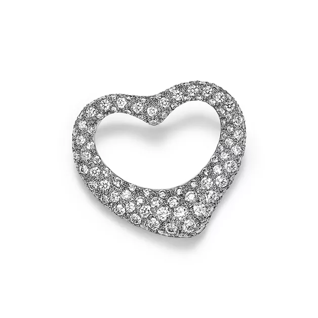 La forme simple et évocatrice des créations Open Heart par Elsa Peretti exalte l’esprit de l’amour. Confectionné en platine 950 millièmes pavé de diamants, ce motif chic est l’un des plus célèbres de la créatrice. Portez cette broche près du col d’un chemisier ou sur le revers d’une veste pour attirer tous les regards.