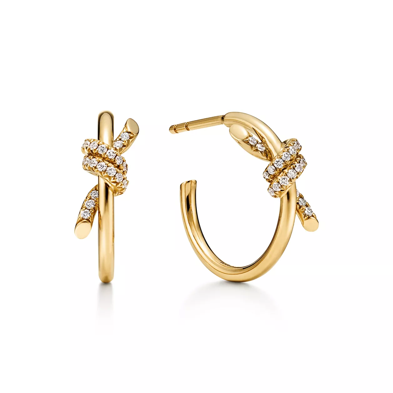 Tiffany Knot est une ode aux liens indéfectibles de l’amour. Inspirée d’un modèle d’archives de 1889 représentant un nœud, la collection Knot symbolise les liens impérissables de la vie et nos relations les plus précieuses. Polies à la main, ces boucles d’oreilles créoles en or jaune 18 carats, taille Small, brillent d’un éclat resplendissant. Chaque diamant taille brillant est sélectionné avec soin dans le respect des normes strictes de Tiffany, et serti à la main avec précision pour un éclat sublimé. Ces boucles d’oreilles se portent seules ou associées à des clous d’oreilles pour un style affirmé.