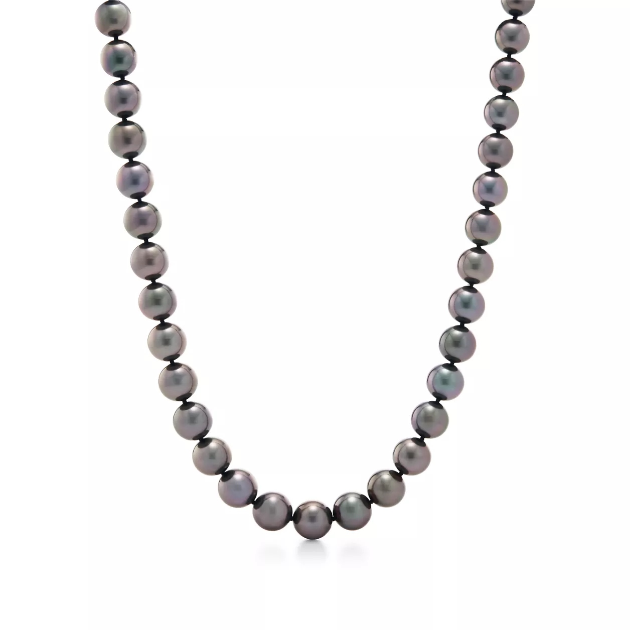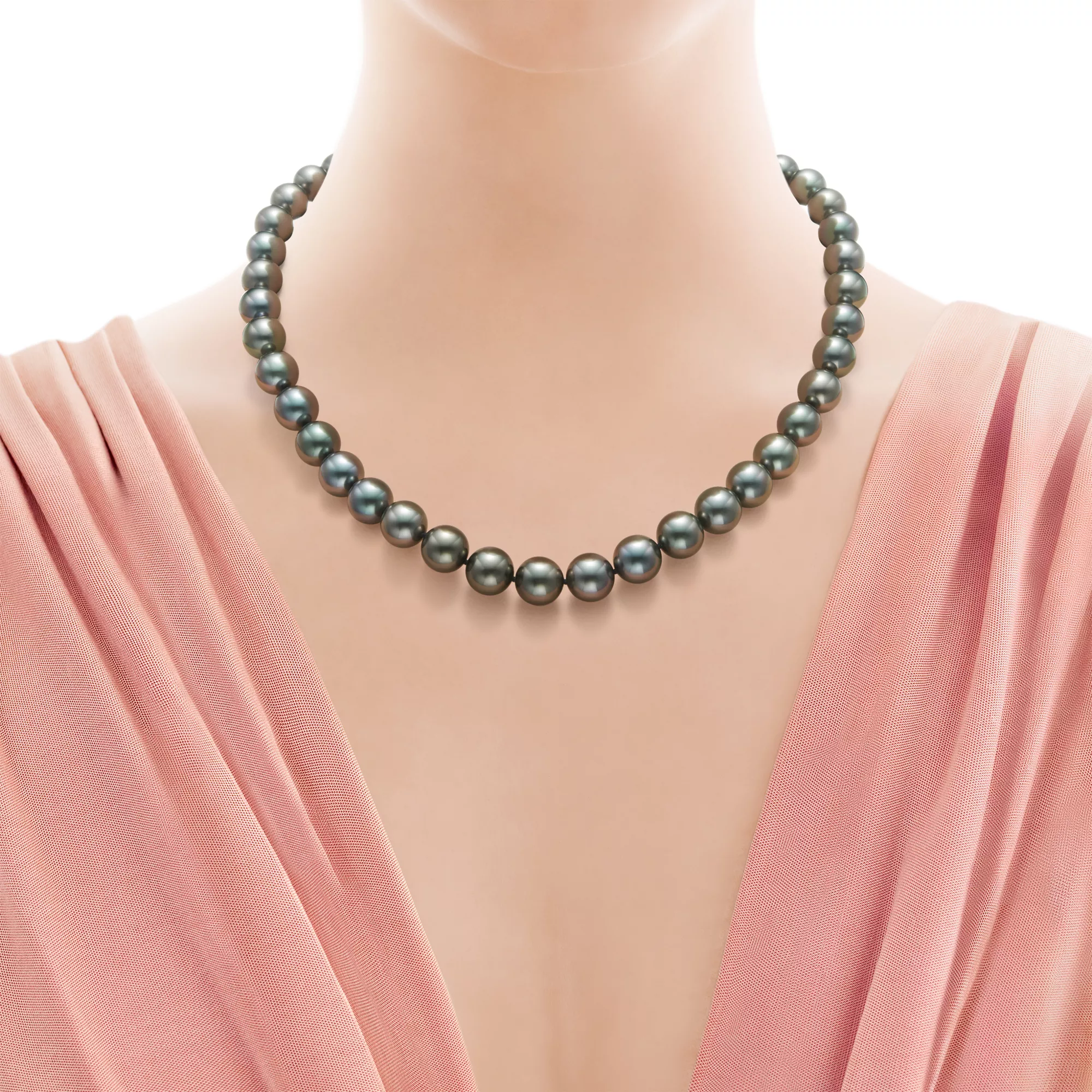 En perles tahitiennes et or blanc 18 carats. Longueur : 45,75 cm. Perles : 9-11 mm.