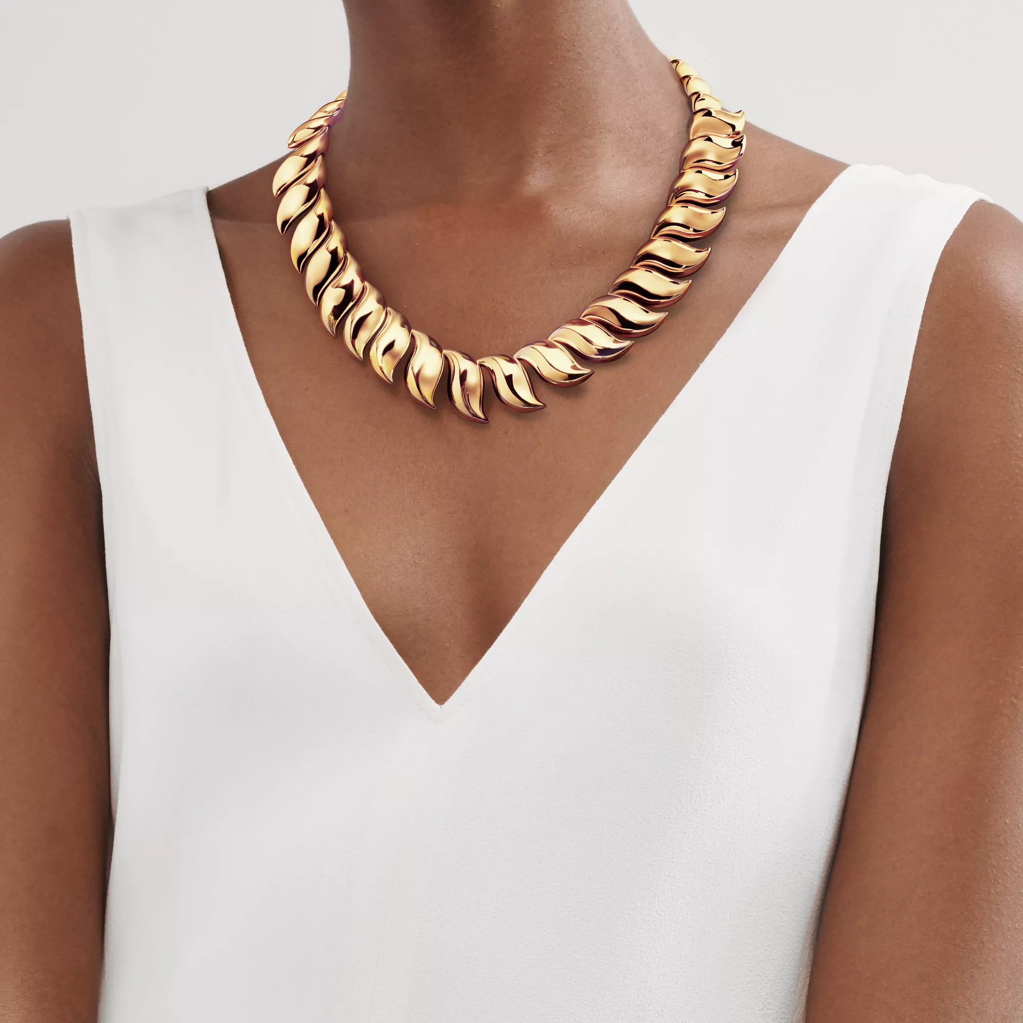 Le modèle Plume d’Elsa Peretti est une interprétation abstraite d’une plume conçue pour le toucher. Le talent unique d’Elsa Peretti s’exprime à travers la surface organique et sculpturale de ce collier aux lignes irrésistibles. Un hommage à la beauté intrinsèque de la nature.