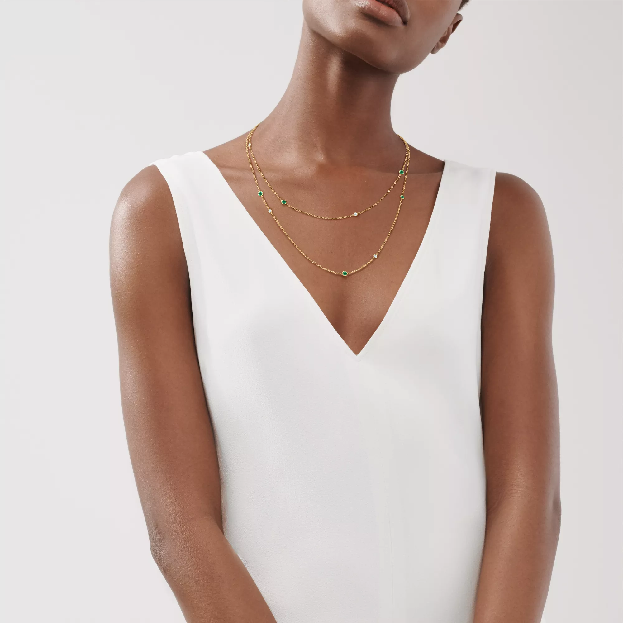 Elsa Peretti® Sautoir clairsemé Color by the Yard en or 18 carats, émeraudes et diamants