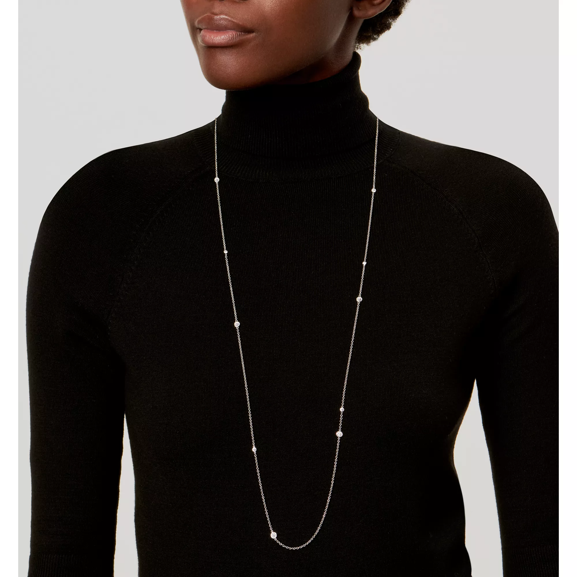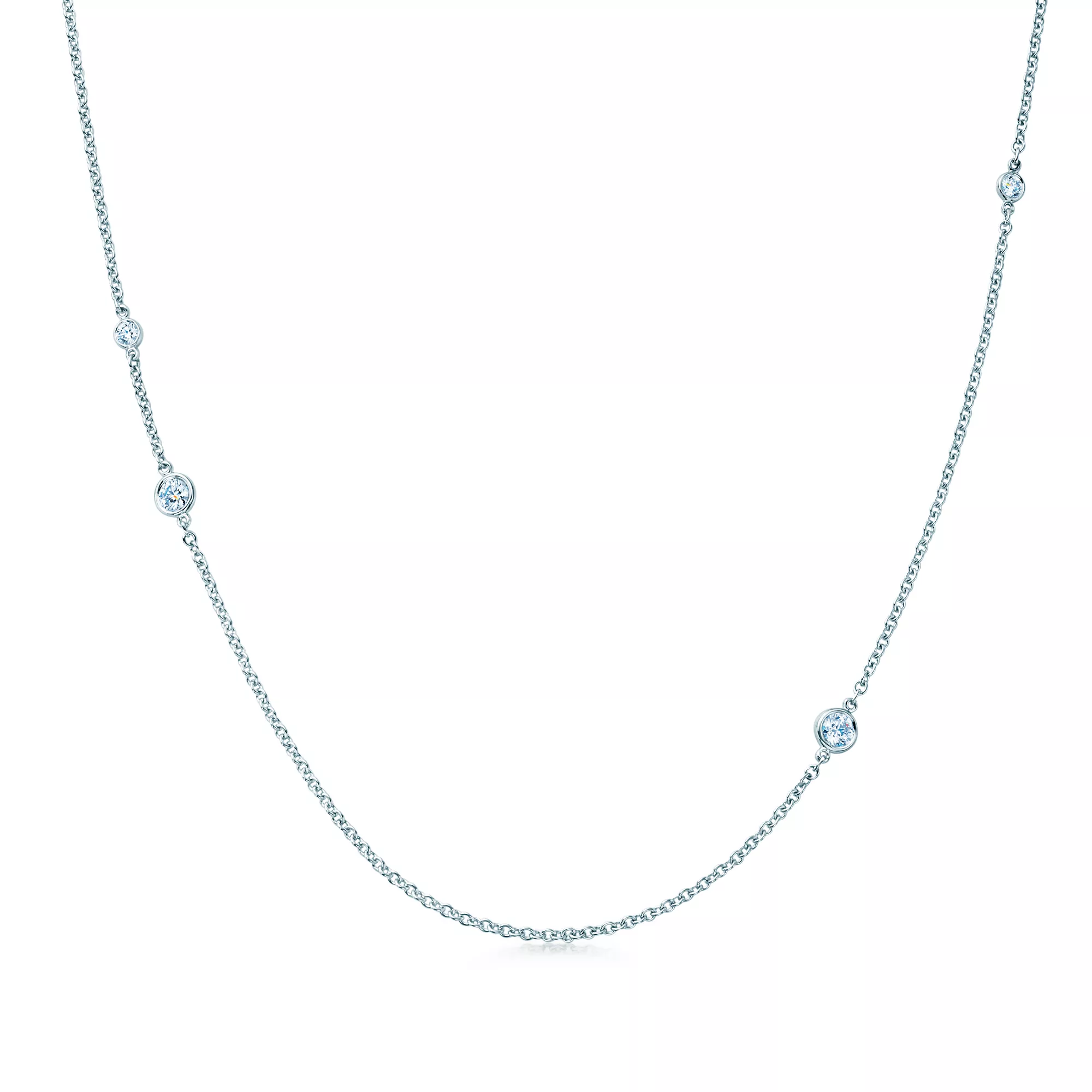 Les brillants de Tiffany capturent la lumière pour la faire virevolter. Collier en platine ponctué de douze brillants. Longueur : 91,5 cm. Créations originales, tous droits réservés à Elsa Peretti®.