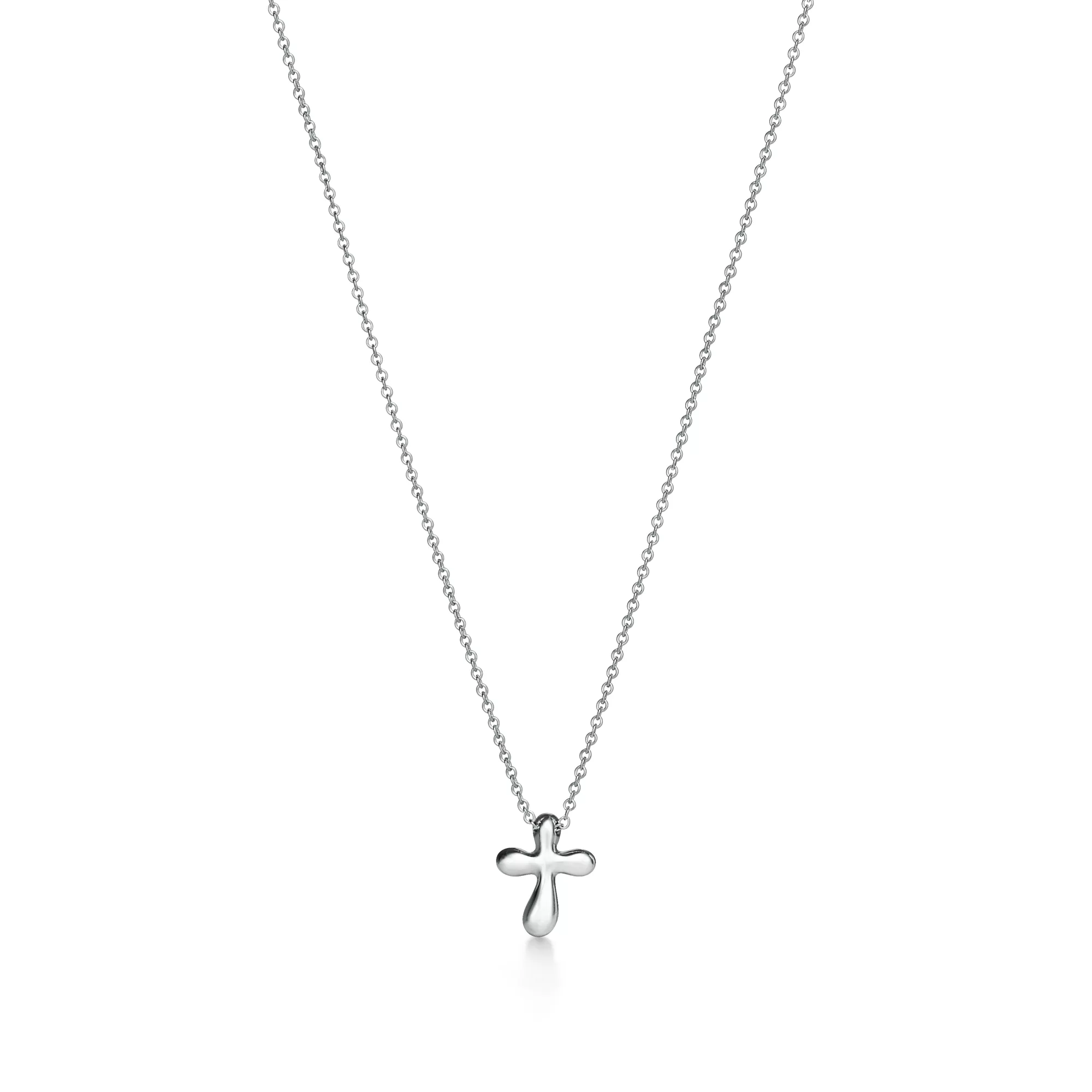 Pendentif Croix en argent 925 millièmes. Taille : Mini, sur une chaîne de 40,5 cm. Créations originales, tous droits réservés à Elsa Peretti®.