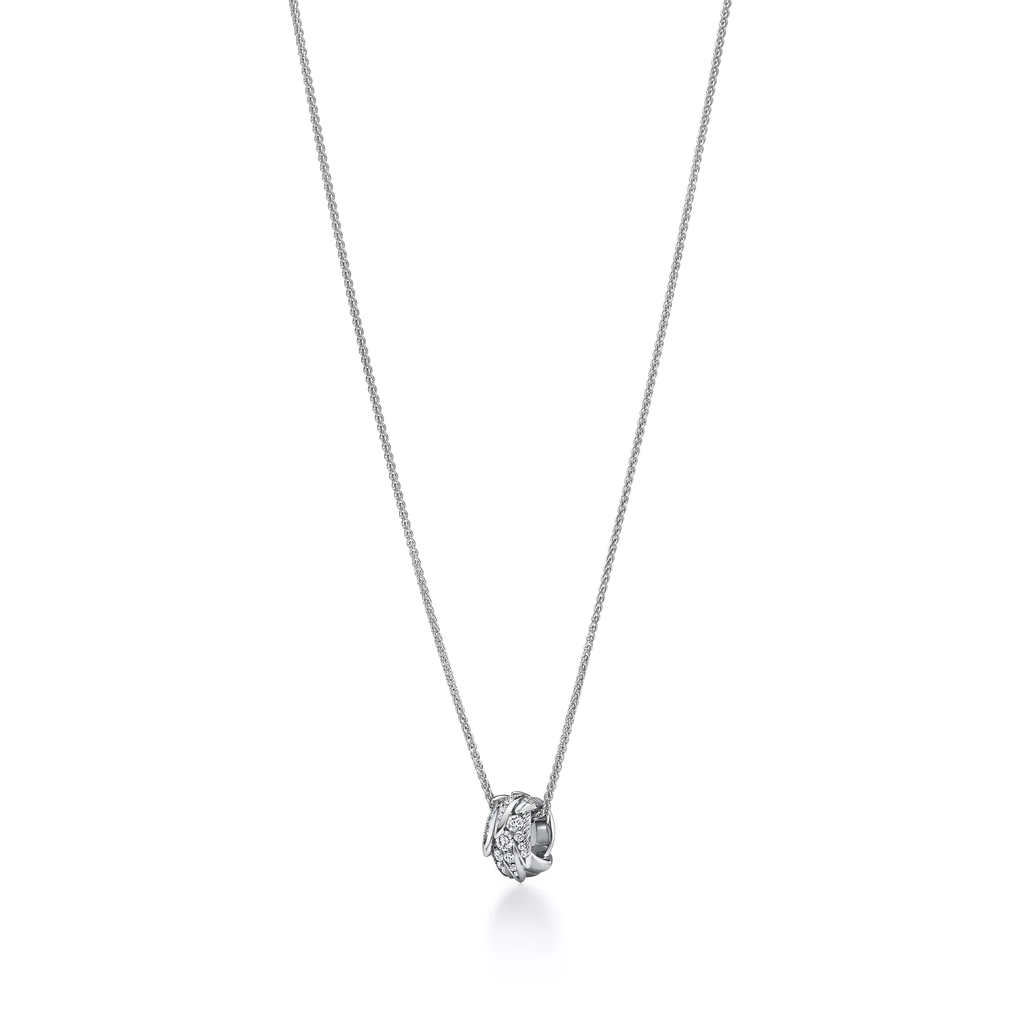 Bird on a Rock by Tiffany est une ode à l’optimisme débridé de l’amour. Dénué de monture visible, ce motif abstrait révèle l’aile dans toute sa pureté, comme si elle était emportée par le vent. Soigneusement confectionné selon des techniques de haute joaillerie très pointues, ce pendentif lumineux en platine 950 millièmes met en valeur des plumes audacieuses et sculpturales. Chaque création capture la grâce du mouvement naturel, qui prend vie à travers l’équilibre délicat entre les diamants taille brillant et les métaux précieux. Le motif s’inscrit dans l’esprit artistique avant-gardiste de la broche originale Bird on a Rock de Jean Schlumberger, transformée en création texturée et affirmée.