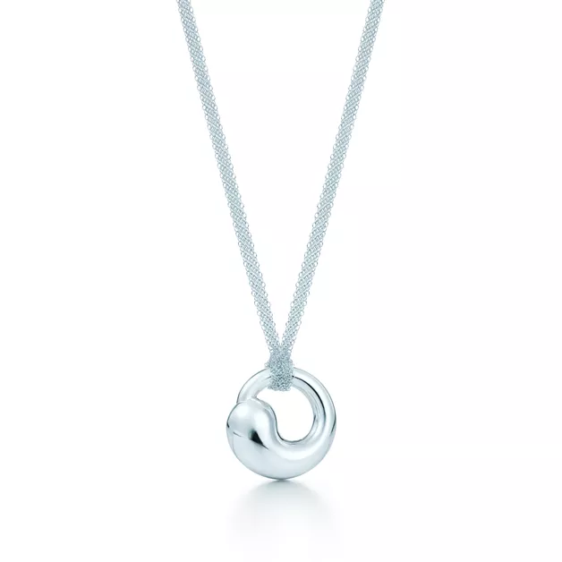 Le cercle, la forme la plus complète, la plus intemporelle. Pendentif en argent 925 millièmes. Largeur : 33 mm. Sur une chaîne en maille de 71 cm. Créations originales, tous droits réservés à Elsa Peretti.
