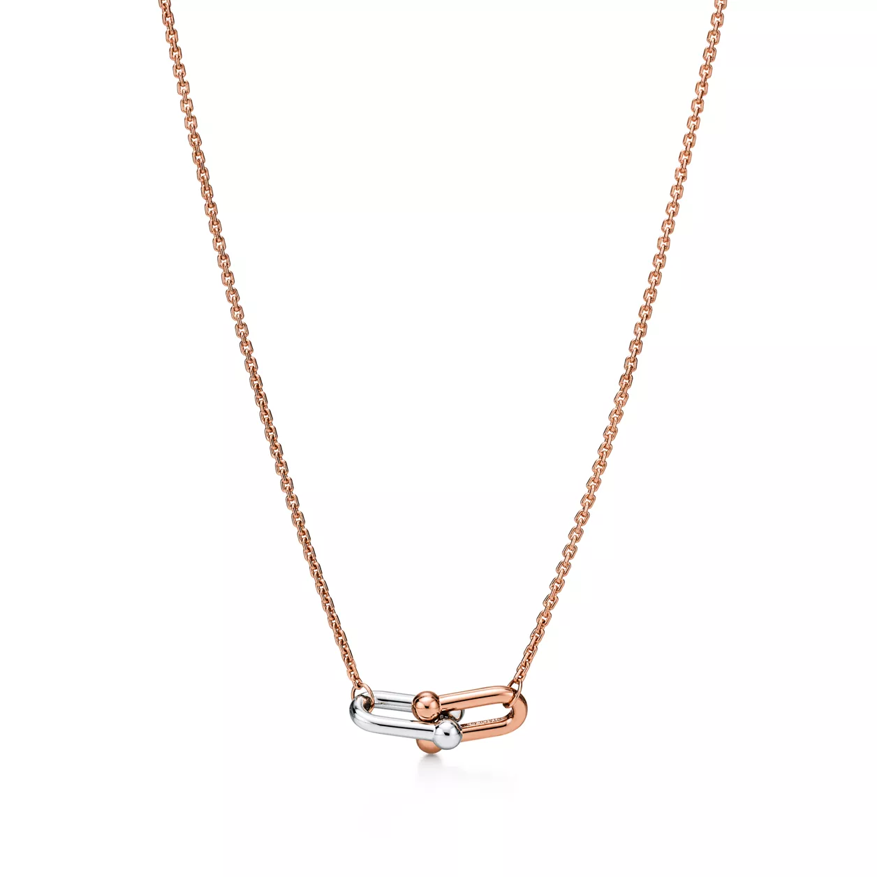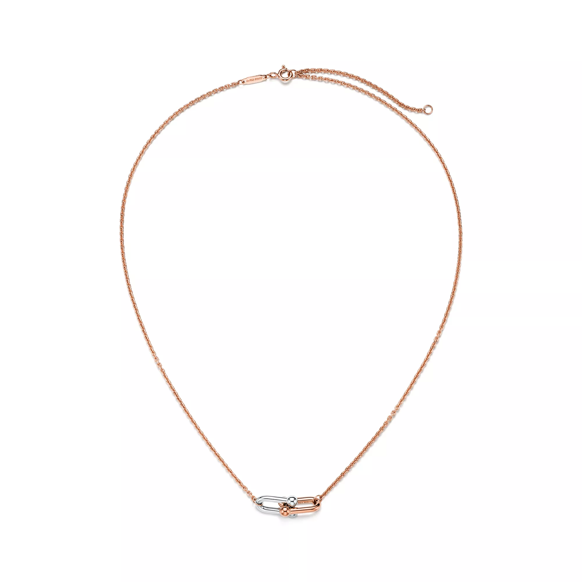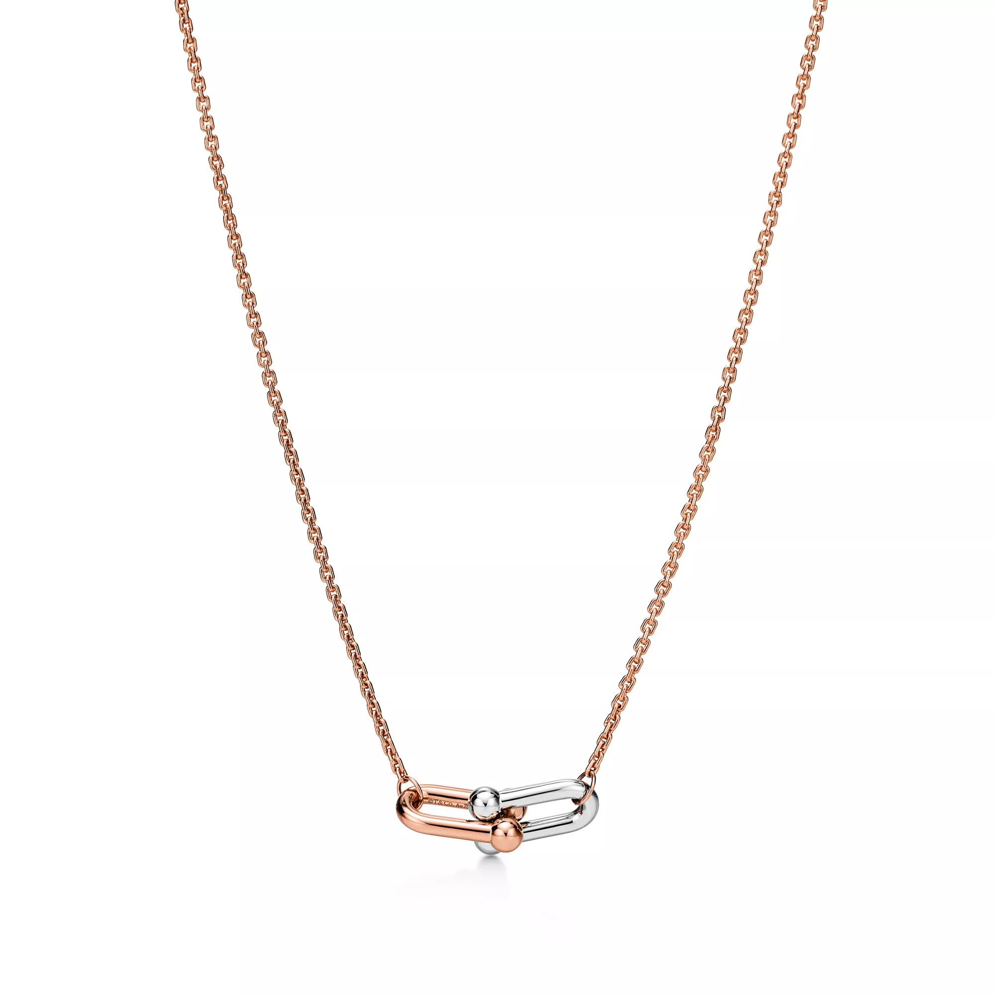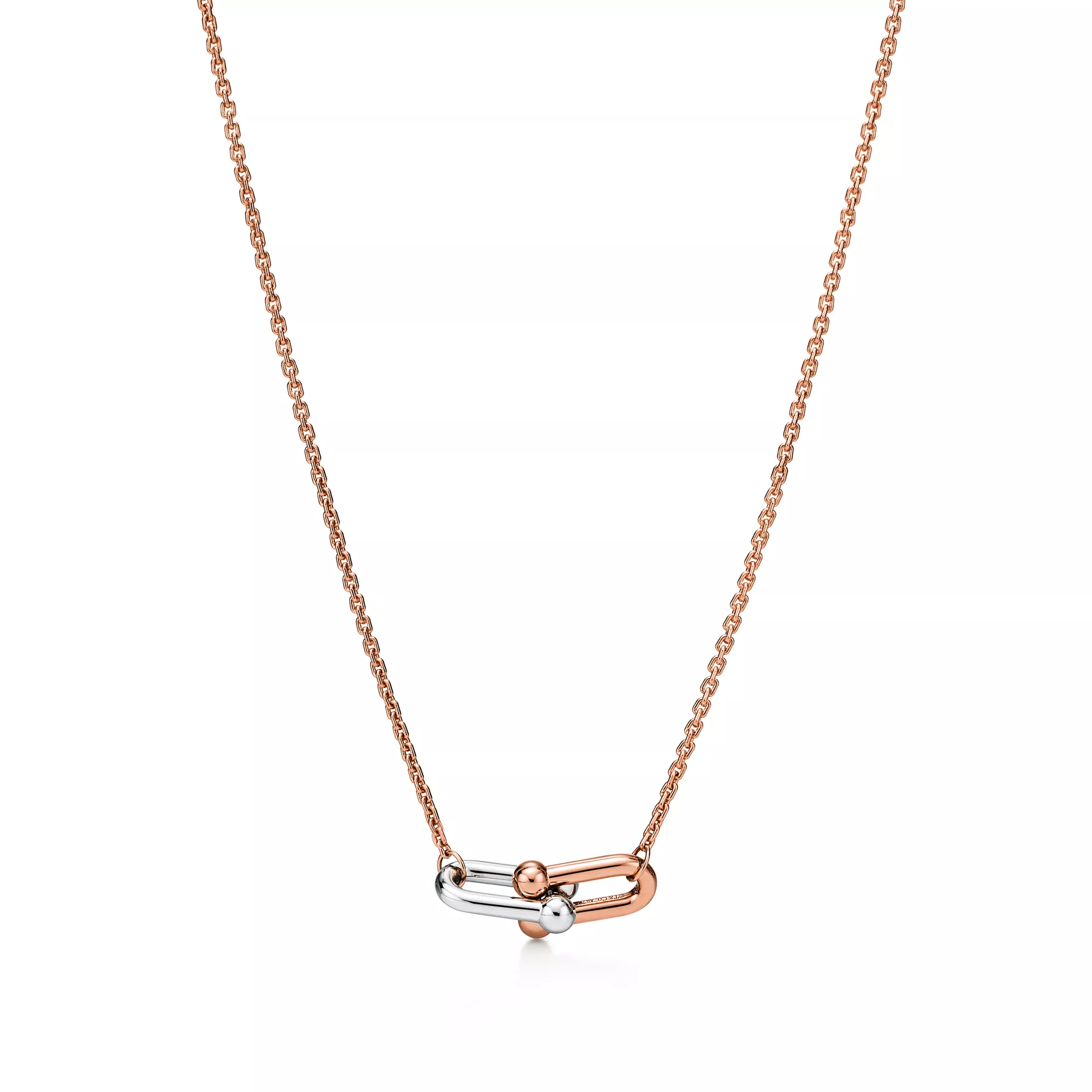 Tiffany HardWear est une ode au pouvoir transformateur de l’amour. Inspirée par un bracelet emblématique de 1962 tiré des archives de la Maison, la collection HardWear incarne une résilience à toute épreuve et un esprit désinhibé. Aujourd’hui, Tiffany HardWear perpétue ce symbolisme avec une collection ancrée dans la liberté et la force que l’on puise dans l’amour. Comme sa ville de naissance, HardWear exprime la capacité à être libre. Les maillons audacieux emblématiques de la collection ornent un éventail de créations dynamiques. Équilibre délicat entre présence et proportion, ce pendentif présente des maillons en or rose et blanc 18 carats finis à la main puis assemblés un à un pour former un ensemble élégant au caractère affirmé. Ce magnifique collier taille Small à double maillons se porte au gré de vos envies. Portez-le seul ou associé à d’autres colliers HardWear de longueurs variées pour un style hors du commun.