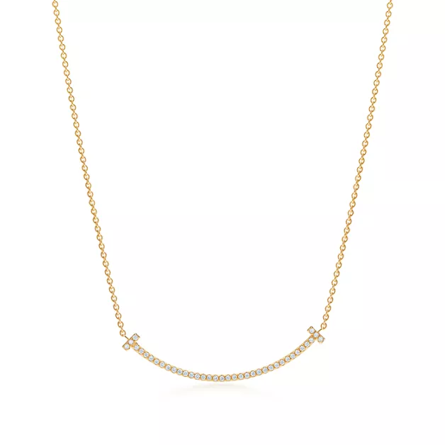Tiffany T Pendentif Smile en or jaune 18 carats et diamants. Small.
