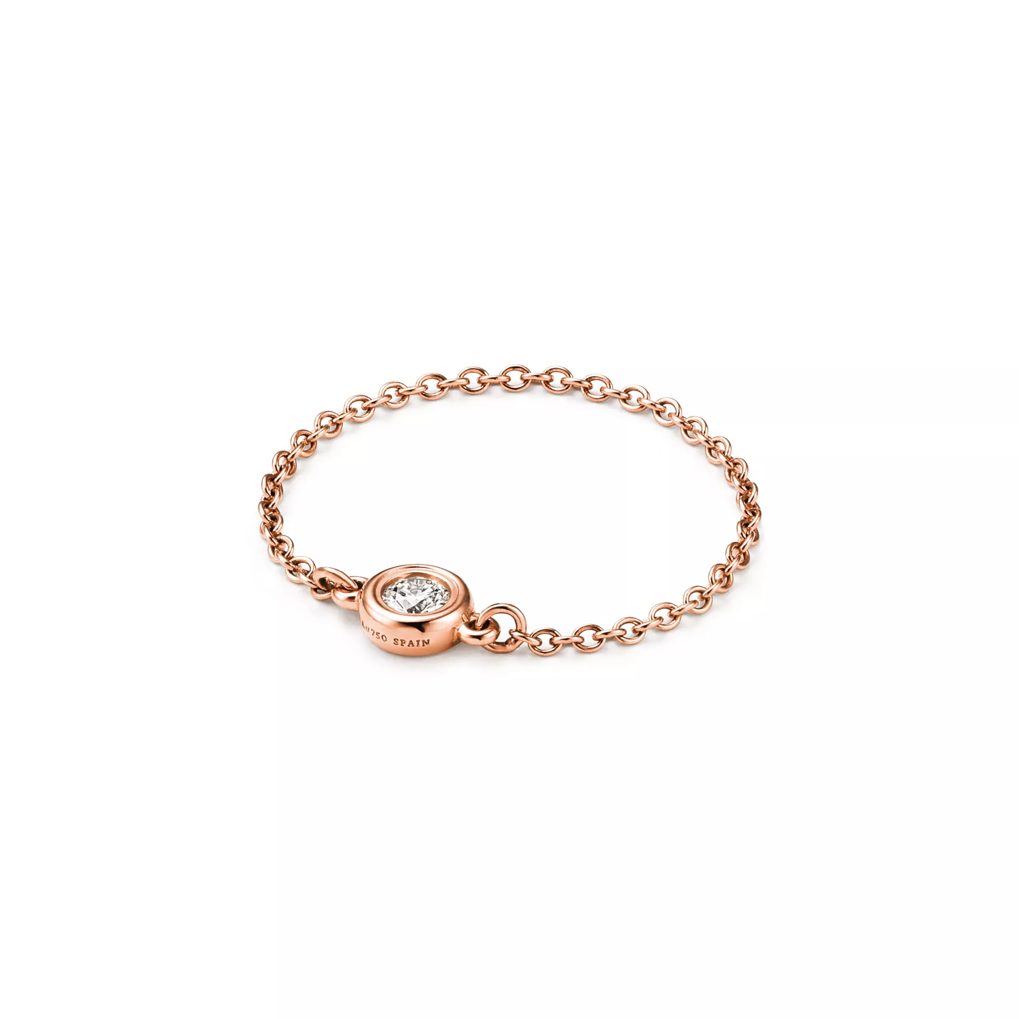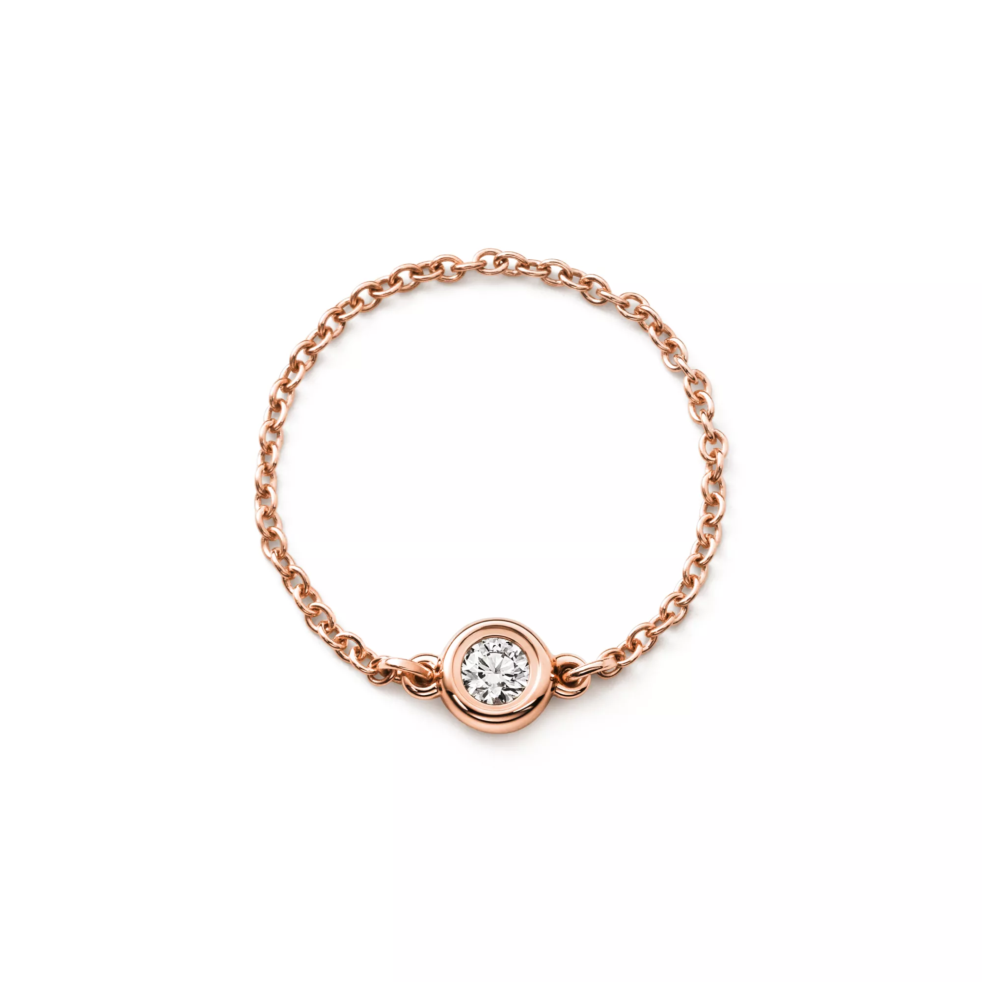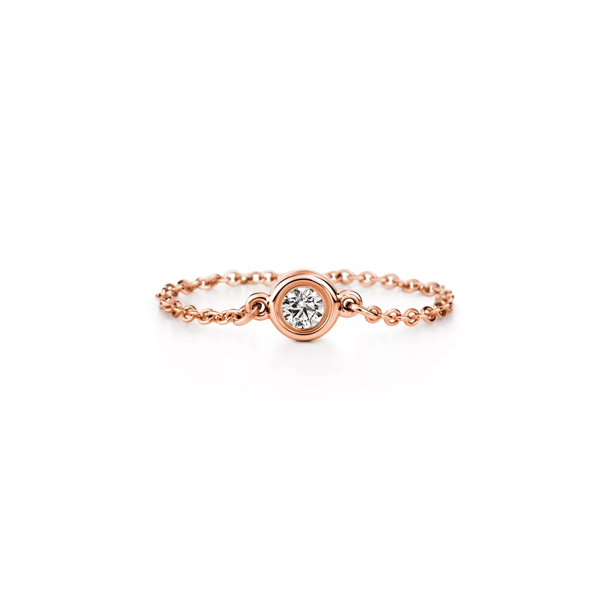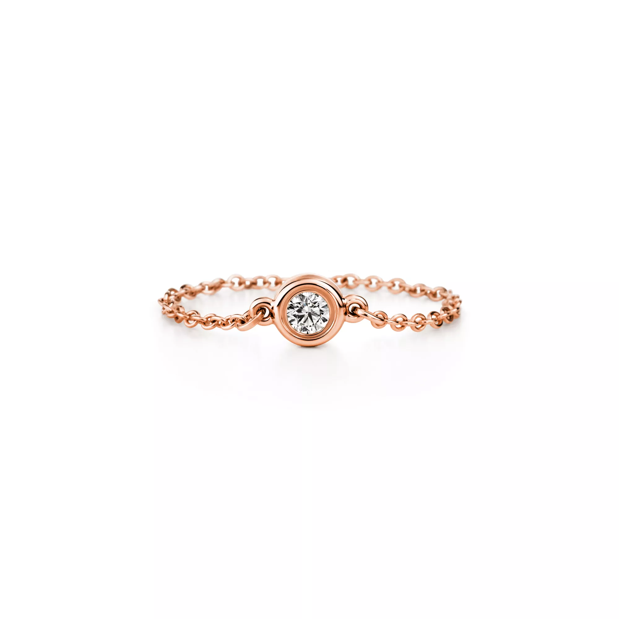 Les brillants de Tiffany capturent la lumière pour la faire virevolter. Bague en or rose 18 carats et brillant. Poids en carats : 0,07. Créations originales, tous droits réservés à Elsa Peretti®.