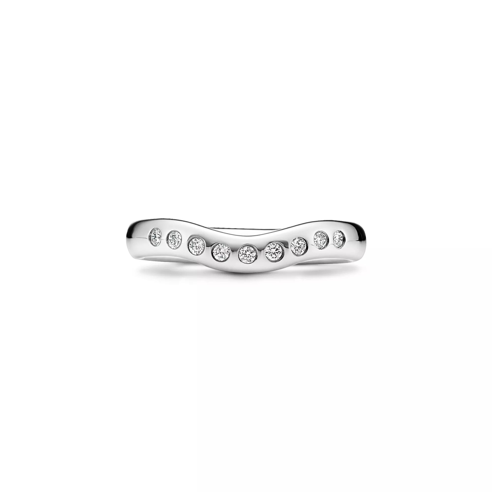 Les brillants font scintiller cette création tout en courbes signée Elsa Peretti®. Anneau en platine et diamants. Taille : Large. Créations originales, tous droits réservés à Elsa Peretti®.