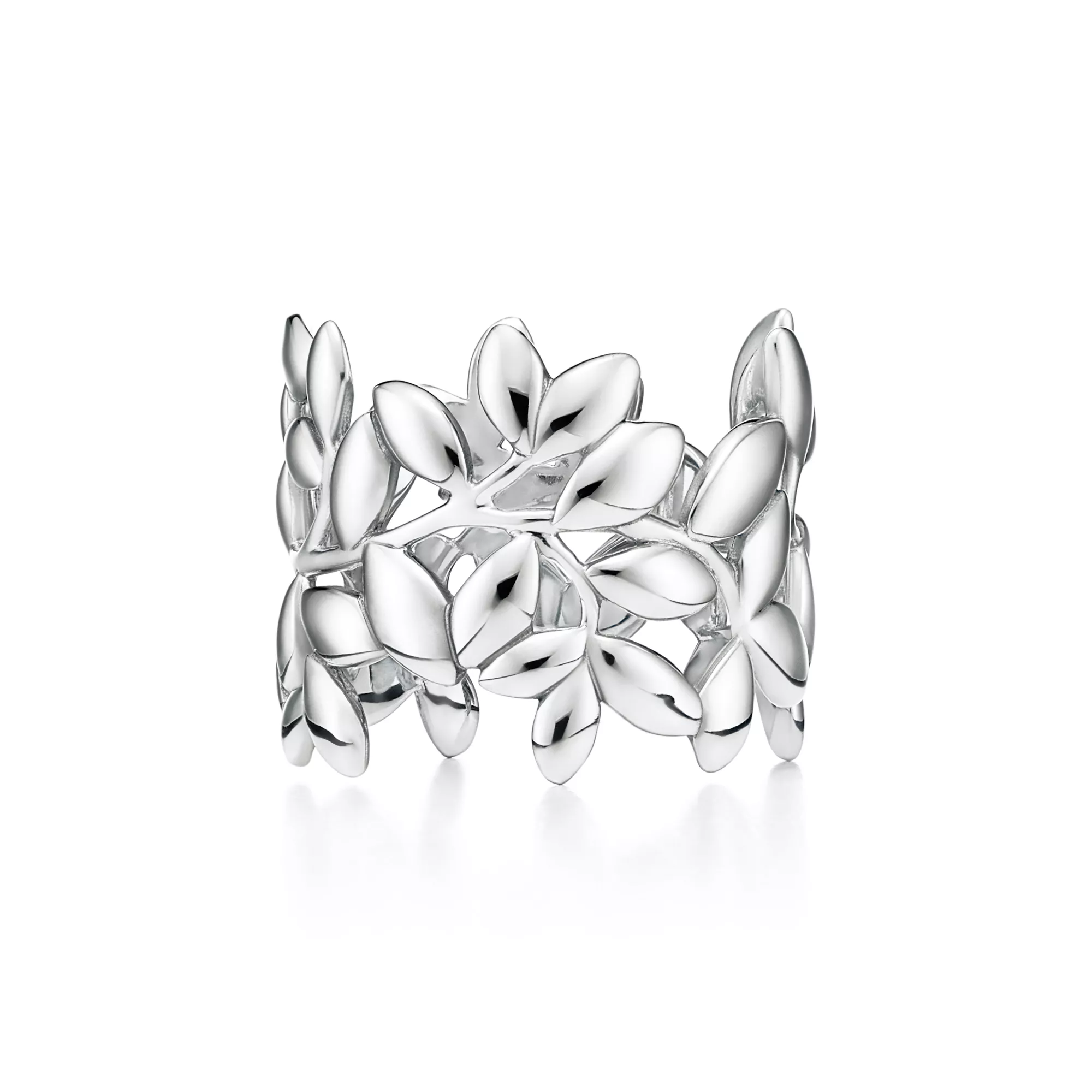En dessinant ce feuillage délicatement ciselé en argent 925 millièmes, Paloma rend hommage au rameau d'olivier, symbole de paix et d'abondance. Anneau en argent 925 millièmes. Créations originales, tous droits réservés à Paloma Picasso®.