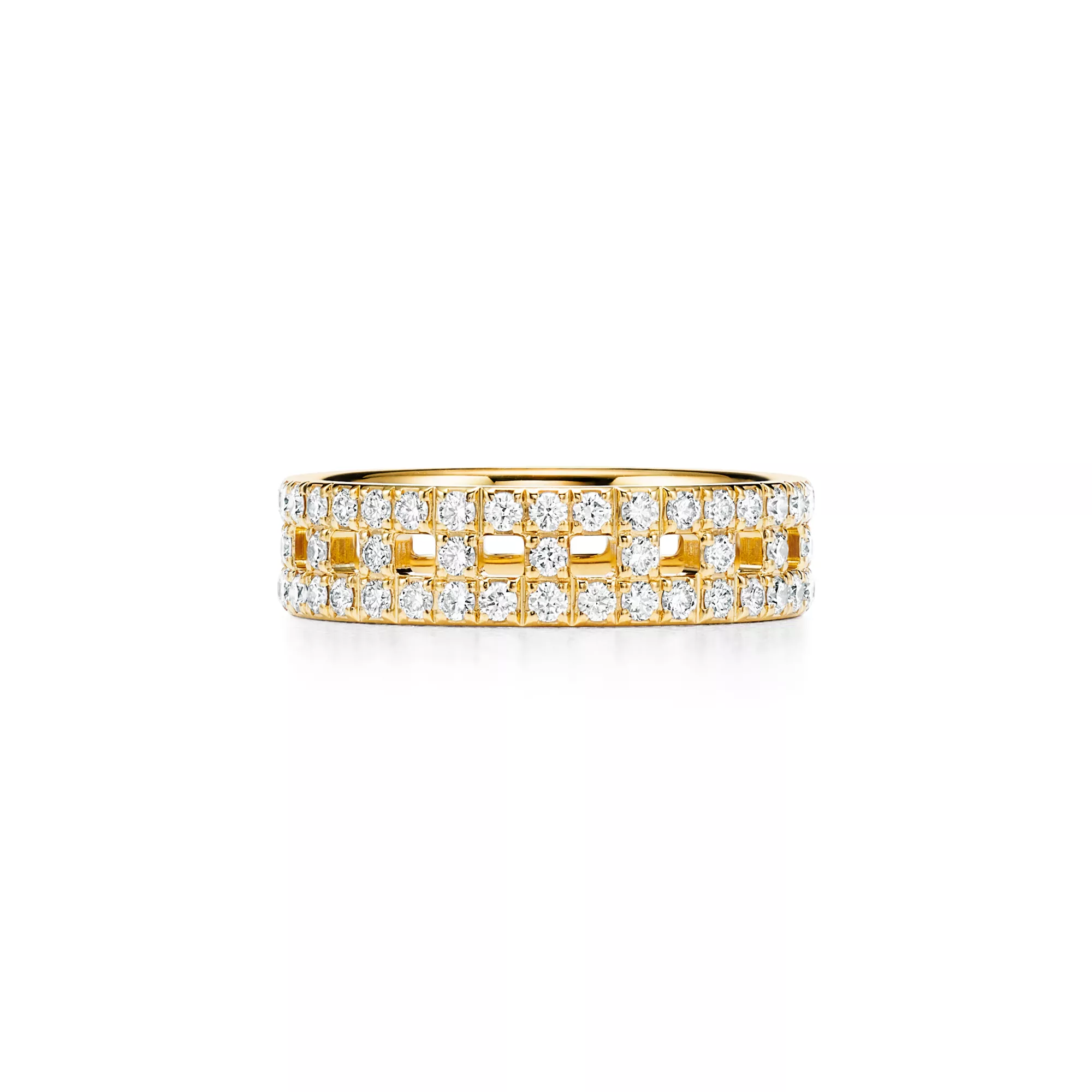 Tiffany T Bague True large en or 18 carats et pavé de diamants