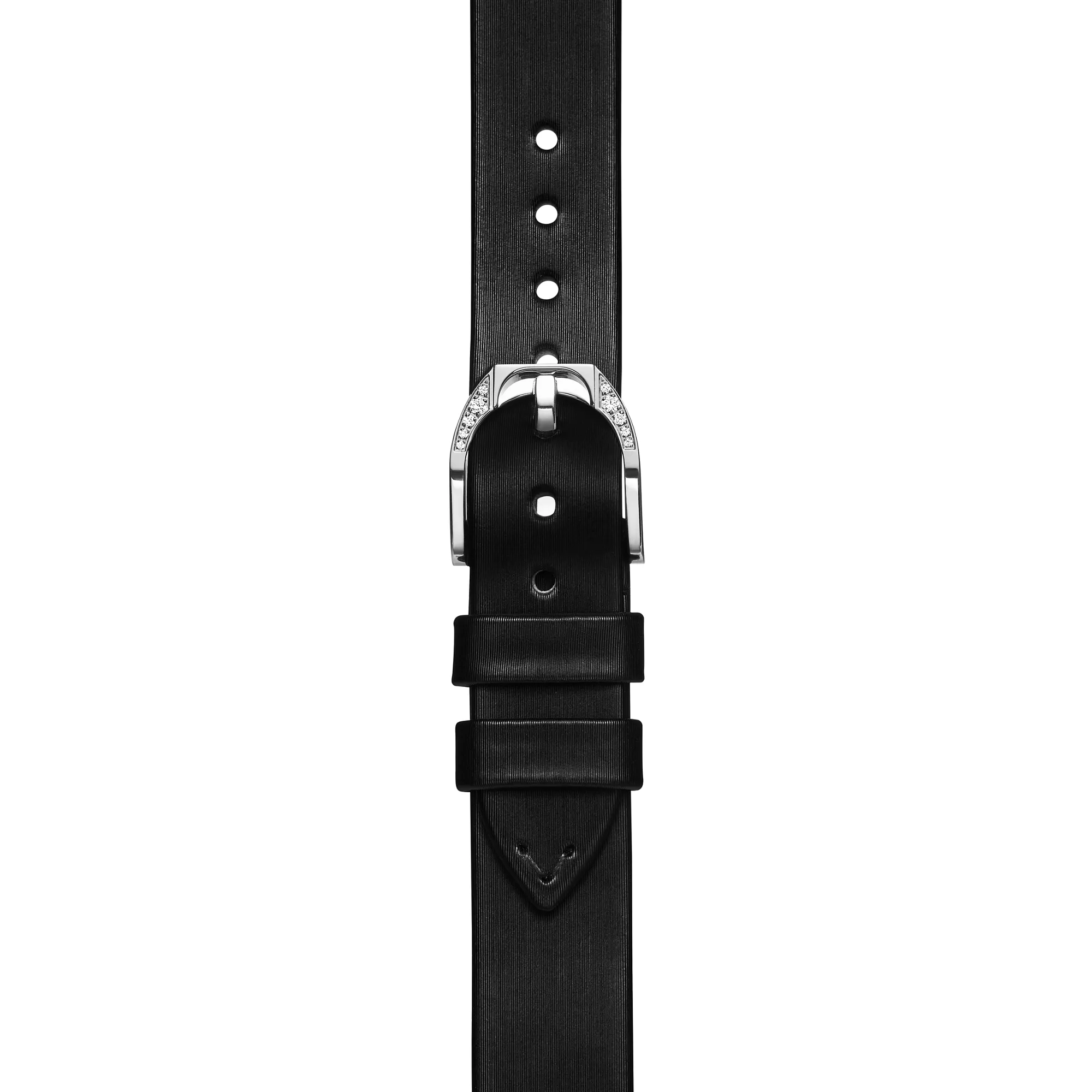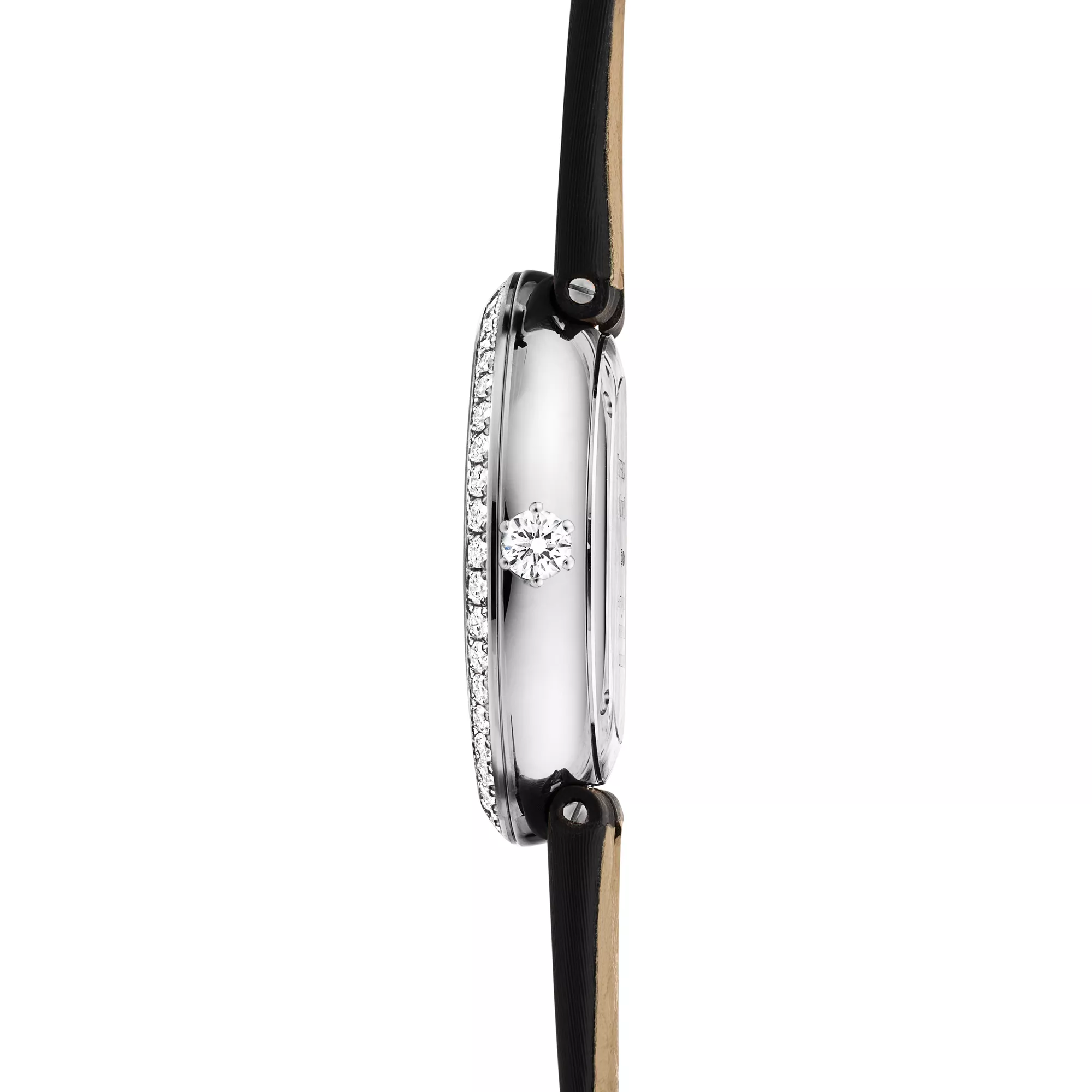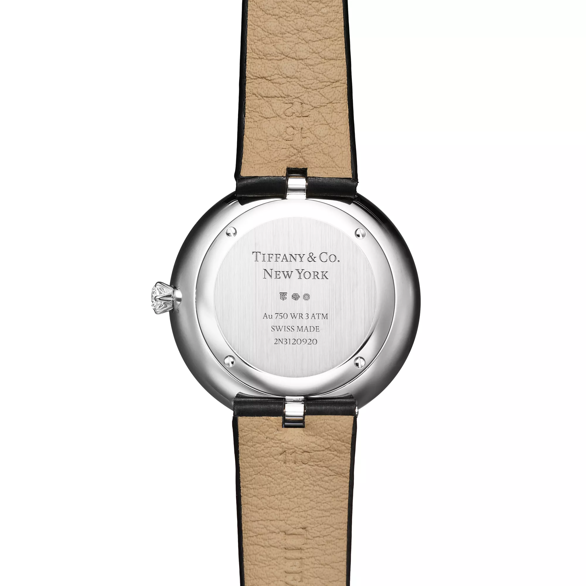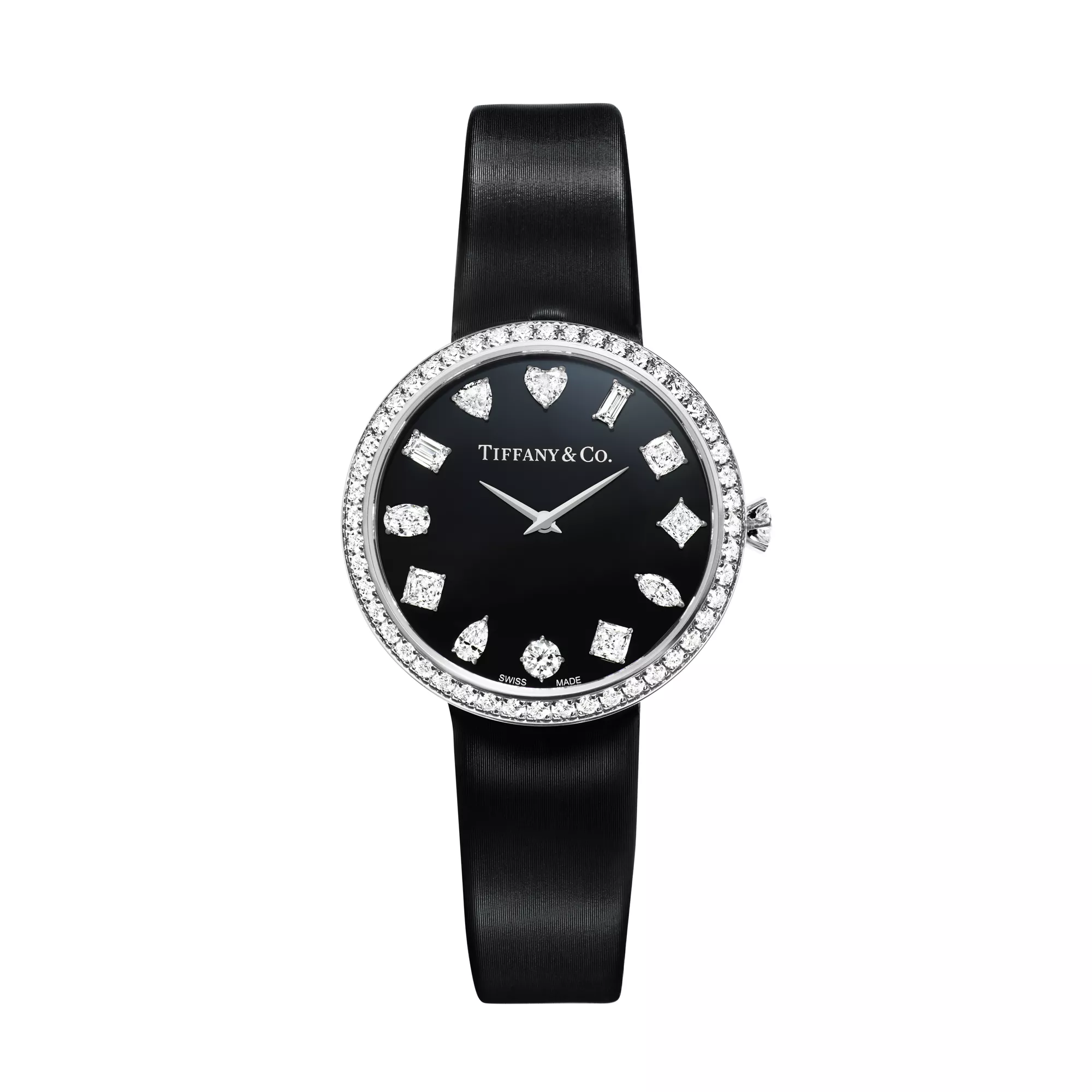 Les montres Tiffany Eternity nous invitent à vivre le moment présent. Inspiré par une série d’anciennes publicités Tiffany & Co. datant des années 60 et 70, le cadran est orné d’un index composé de 12 diamants de tailles différentes : brillant, baguette, coussin, Tiffany True®, marquise, Asscher, cœur, poire, ovale, émeraude, triangle et princesse. Une auréole de diamants taille brillant souligne le contour du boîtier, sublimée par sa couronne inspirée de la bague de fiançailles Tiffany® Setting avec sa monture emblématique à six griffes. Cette montre en or blanc 18 carats est dotée d’un bracelet en cuir de vachette brossé noir avec une boucle sertie de diamants taille brillant. Cette création illustre magnifiquement notre savoir-faire et notre éternelle passion pour les diamants les plus beaux du monde.